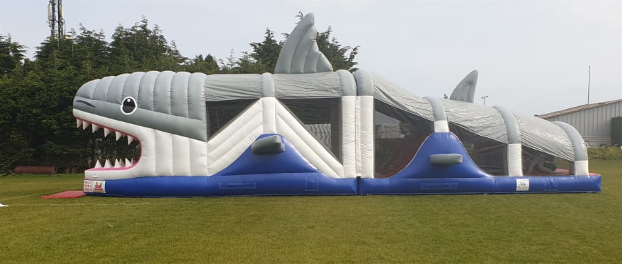 But this big Guy is the Daddy Shark with 2 slides inside this amazing obstacle course,