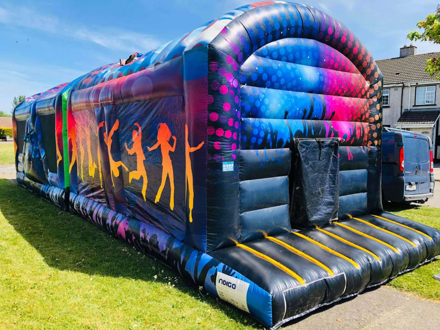 40ft Disco House, it features a 20ft Inflatable Dance floor with Disco Lights and Speaker,
